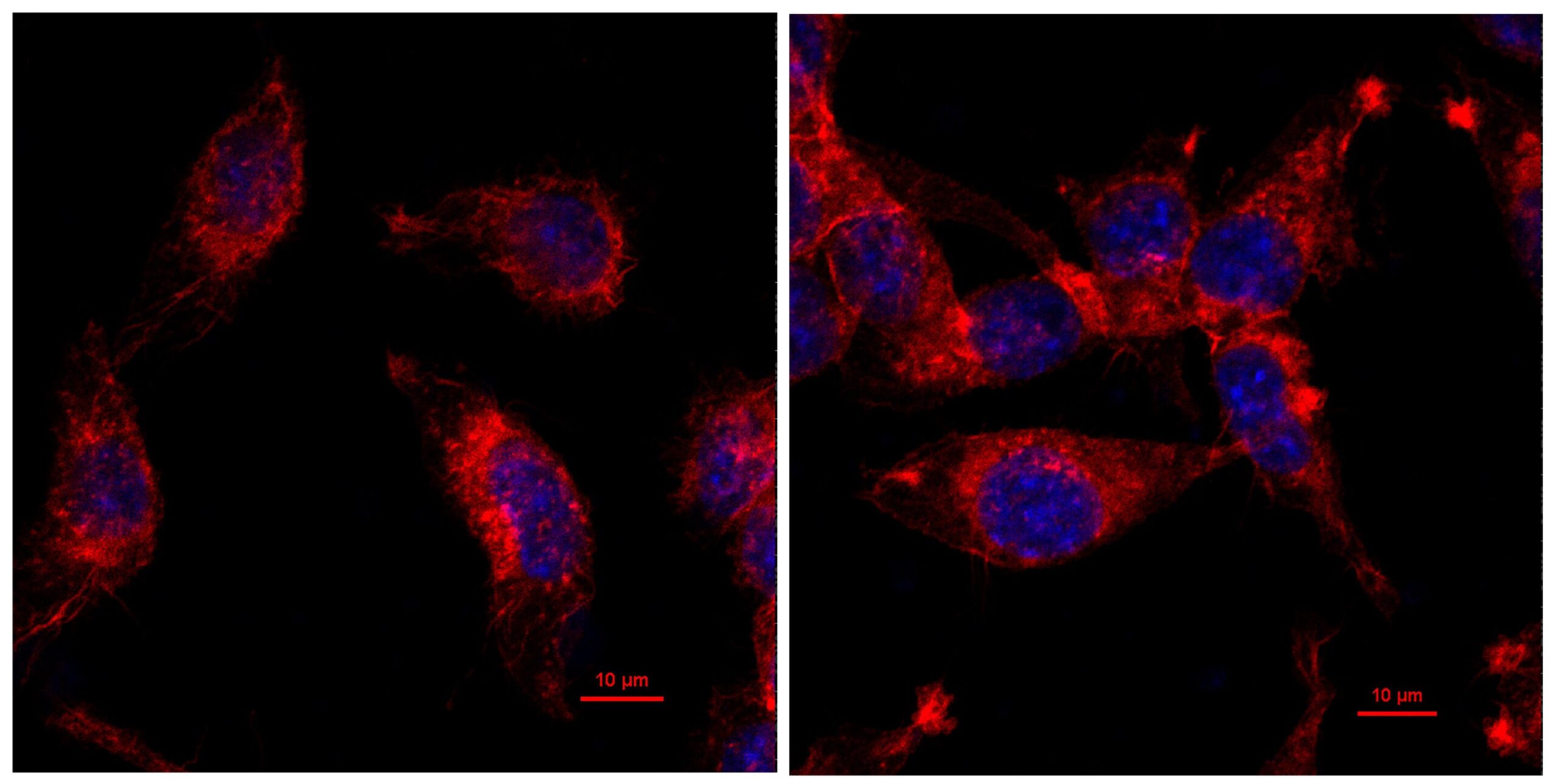 These confocal microscope images illustrate the differences in cell proliferation between a normal murine colon cancer tumor (left) and a tumor carrying the A159V mutation that causes faster tumor growth. New research from experts at Cincinnati Children’s reveals that the drug rapamycin may make mutated tumors more sensitive to immune checkpoint inhibitors. Credit: Children of Cincinnati