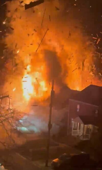 The operation seems to be proceeding normally when suddenly, the house is literally pulverized by an explosion which transforms the house into a ball of fire and throws debris in all directions.